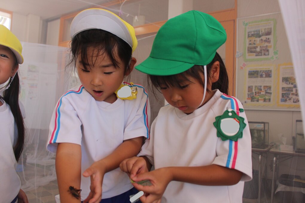 遊びを通して、見たり触れたり、観察したりするだけでなく、お世話をしたり、また、強く握ったり、無理やり引っ張ったりして虫を弱らせてしまったり…など体験する中で、命の尊さや大切さも感じてもらいたいと思っています。大人が虫を怖がると子どもたちも「虫は怖いもの」と認知してしまうそうです。この秋はぜひ子どもたちと一緒に虫捕りを楽しんだり、虫の鳴き声に耳を傾けたりしてみてください。