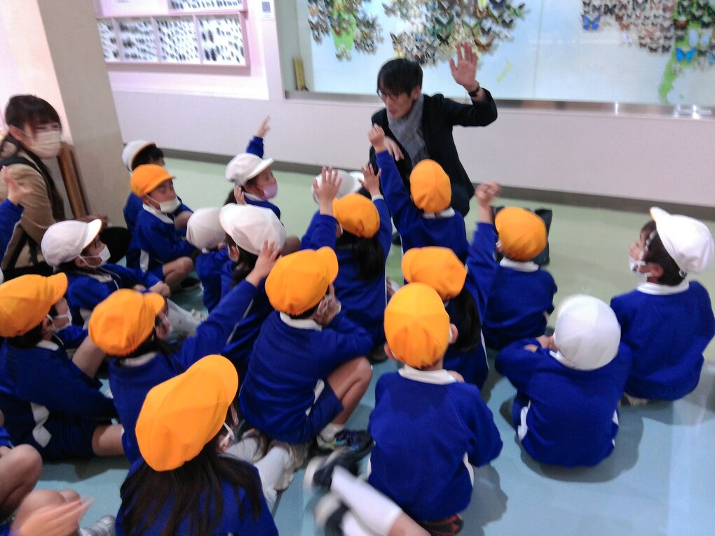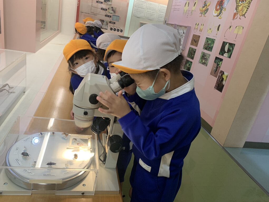 子ども達が大好きな世界の昆虫標本コーナーは自由に見て回りました。好きな昆虫や見たことのない生き物との出会いにキラッキラな表情の子ども達。嬉しい気持ちのなかでも、公共の場での過ごし方を考えながら楽しむ姿はさすが年長さんだなぁと感じました。