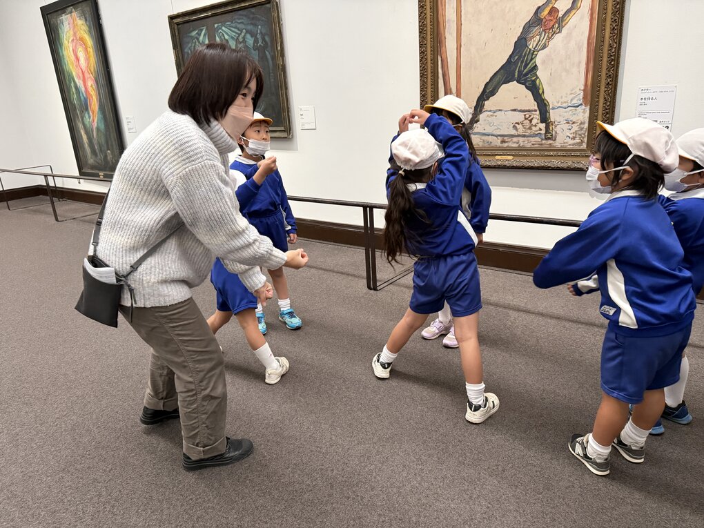 わくわくしながら、さっそく中に入りました。美術館ならではの雰囲気やたくさんの名画を前に「すごい…」と声がポロリ…。宝物を守っていくためのお約束『静かに話すこと・走らないこと・作品に触らないこと』をみんなで確認し、学芸員の先生方と一緒に館内をお散歩していきます。