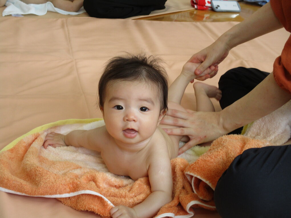 <ベビーマッサージは気持ちよくてご機嫌でした。>
