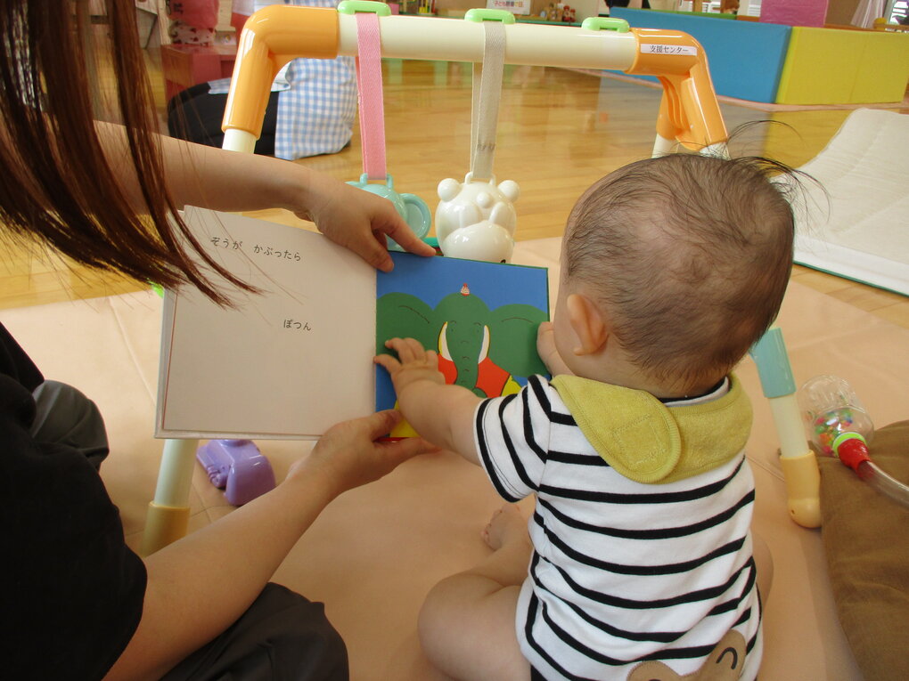 <歌とお話の会も多数の参加があり、お母さまの読み聞かせにも真剣に聞き入る姿が微笑ましいです。きっと絵本が好きなお子さまになるでしょう。>